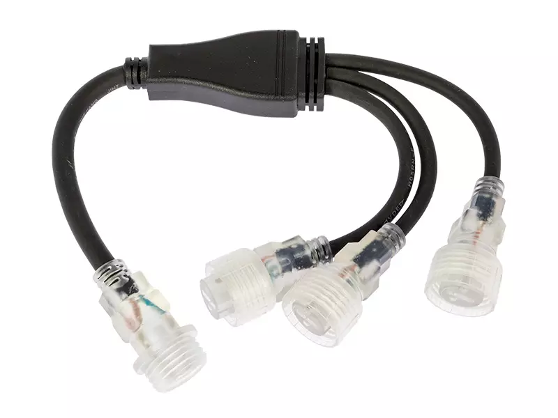 Ledwise Work led-valonauhan Y-haara kolmelle nauhalle. Tämän tuotteen avulla saat yhdistettyä kolme valonauhaa yhden pistotulpan taakse.