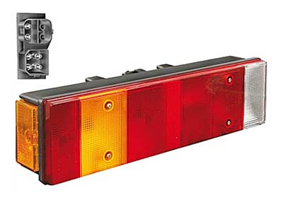 Kuvaus: 7-kammio, äärivalo, heijastin, rek.valo, tuplapistoke takana, ruuviväli 160mm, liitinsarjat 1052-0750, -0753, BA15s