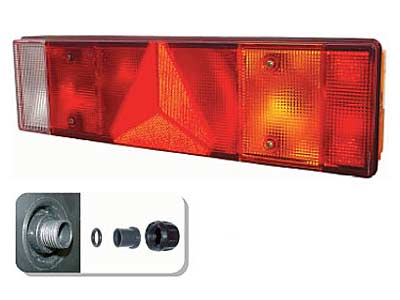 oikea, 7-kammio, kolmioheijastin, sivuäärivalo, rek.valo, läpivienti takana. ruuviväli 152mm, BA15s