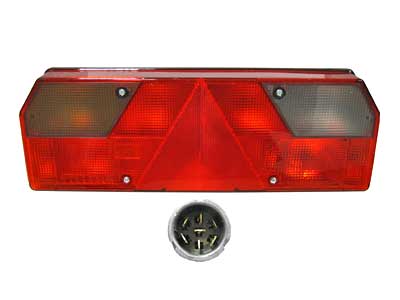 vasen, 7-kammio, kolmioheijastin, sivuäärivalo, pistokkeella (takana keskellä). ruuviväli 152mm, BA15s /BAY15d