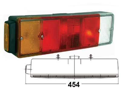 vasen, 5-kammio, vilkku, jarru, parkki, peruutus, sumuvalo, rek.valo, sivuäärivalo, läpivienti takana. ruuviväli 160mm, BA15s, SV8.5
