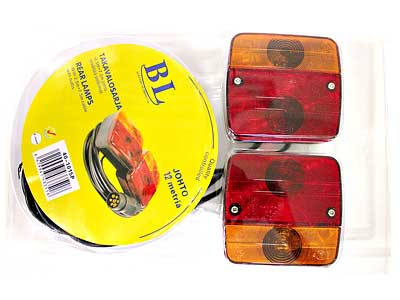 4- ja 3-toimiset takavalot, E11 johto 12m + 7-nap. pistoke sis. 12V polttimot