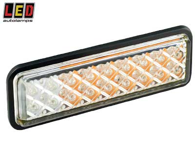 keltainen/kirkas, kapea, todella kestävä polykarbonaattilinssi timanttikuviolla, upotusasennus, musta asennuskaulus, ECE, IP67, iskunkestävä. johto 400mm, asennusaukko 133x36mm