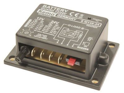 12V/24V Akkuvahti, joka kytkee virransyötön takaisin kun jännite palautuu normaaliksi. Portaattomasti säädettävissä. Max 20A