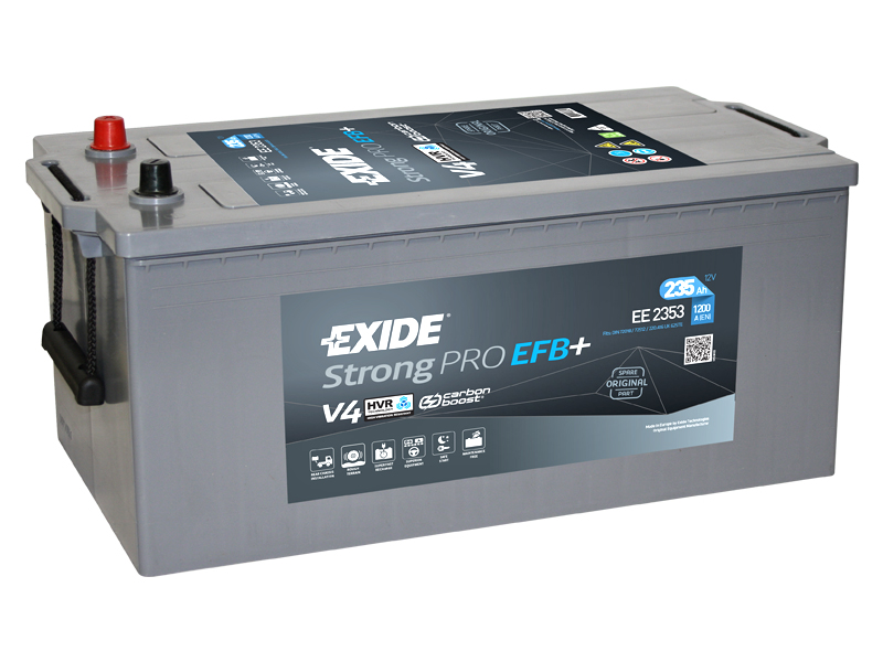 Exiden StrongPRO-akkumallisto on nyt vahvempi kuin koskaan. Uudet hiilipohjaiset negatiiviset levyt nopeuttavat StrongPRO EFB + -akun varautumista ja parantavat varauksen vastaanottokykyä. Lisäksi HVR (korkean tärinänkestävyys) -teknologia mahdollistaa StrongPRO EFB +:n kyvyn läpäistä äärimmäiset tärinätestit uuden eurooppalaisen V4-standardin (EN 50342-1: 2015) mukaisesti. Vankempi ja kestävämpi akku merkitsee pienempiä kokonaiskustannuksia ajoneuvokannan omistajille sekä minimoi odottamattoman ja ennenaikaisen akkuvirheen riskiä.