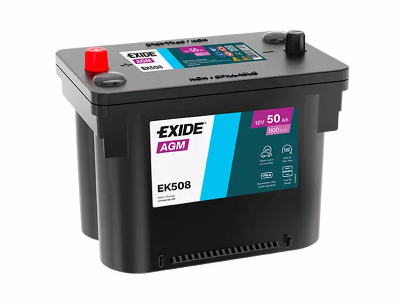 Exide EK508 AGM käynnistysakku 12V 50Ah 800A +/-