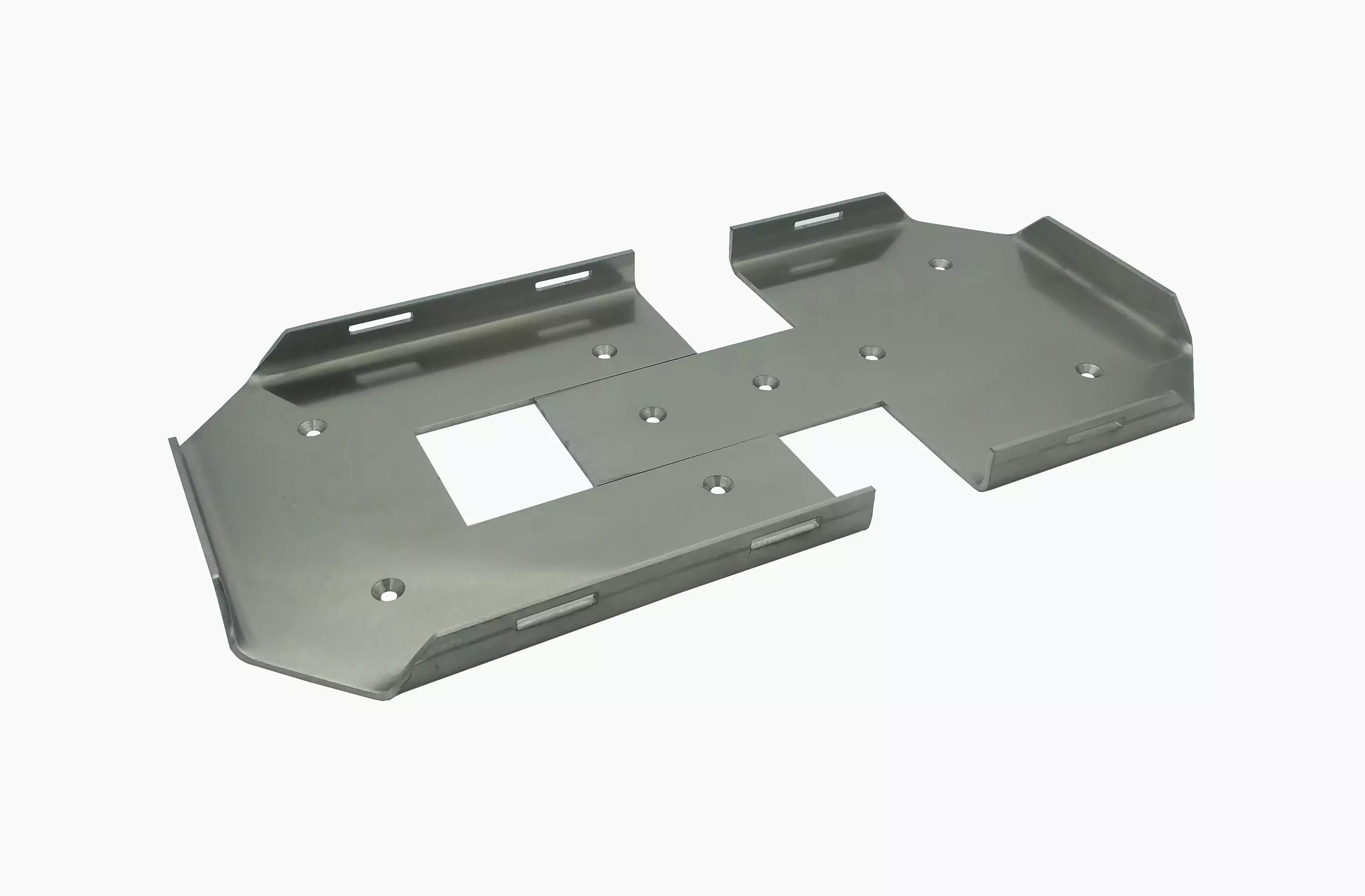 Teline on kahdessa osassa, molemmilla puolilla valmiita senkattuja M5 kiinnitysreikiä. Materiaalina on käytetty 3mm paksuista rosteria. Teline on varmasti "ikuinen".