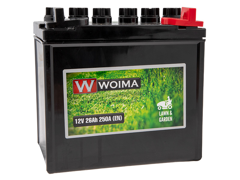 Globen valmistama ruohonleikkurin käyttövalmis 12V käynnistysakku. Korkeilla Hapotettu ja ladattu Tekniset tiedot: Jännite: 12V Kapasiteetti: 26Ah Kylmäkäynnistysvirta: 250A Mitat: 185x125x178mm...