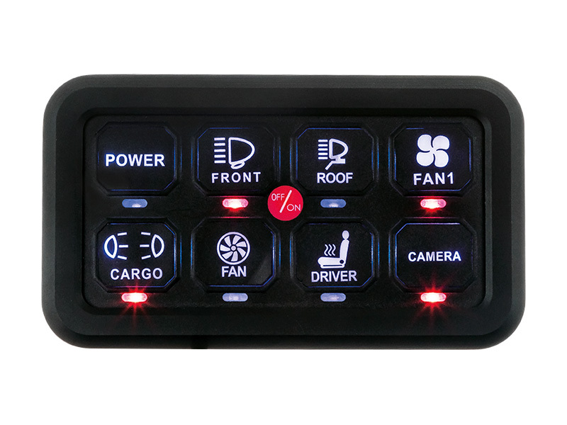 Kuvaus: OPTIBEAM ohjauspaneeli on tarkoitettu nopeuttamaan ja helpottamaan lisälaitteiden asennusta ja ohjausta erilaisissa 12V/24V käyttöympäristöissä kokonaisteholtaan aina 60 Ampeeriin asti. Erillisiä laitekohtaisia sulakkeita, releitä tai katkaisijoita ei enää tarvitse asentaa, vaan käytettävät toiminnot kytketään suoraan 8- kanavaiseen ohjausboxiin josta niitä käytetään omalla 8-nappisella käyttökytkimellä. Sopii mainiosti esimerkiksi ajoneuvon/ työkoneen varoitusvaloille, sisävaloille, työvaloille, puhaltimille ym.
