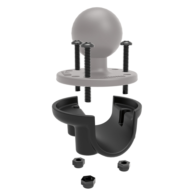 RAM-233U on merialumiinista valmistettu ja pulverimaalattu kaideadapteri joka sopii 2,5":n pyöreisiin pohjiin (RAM-B-202U ja RAM-202U). Kaidepaksuus 19 - 25 mm