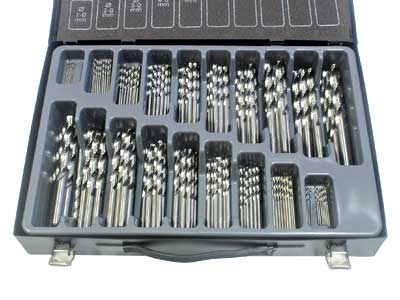 Kuvaus: DIN338 N, HSS-G ø1-10mm, 0.5mm nousulla, lukumäärät: ø1.0-8.0mm 10kpl kutakin ja ø8.5mm→ 5kpl/koko. metallisalkku
