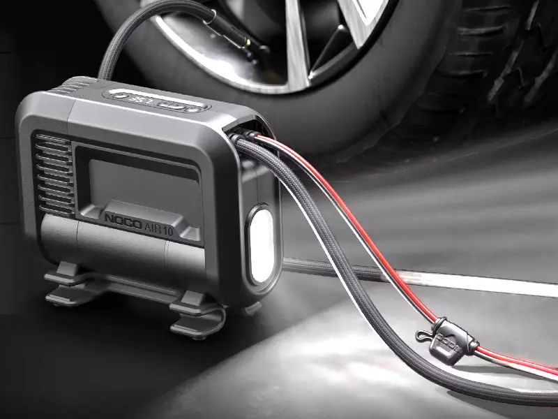 Esittelyssä Nocon AIR10 12V, 10A siirrettävä ilmakompressori 138W moottorilla, joka tuottaa maksimissaan 60PSI/4 Bar paineen.