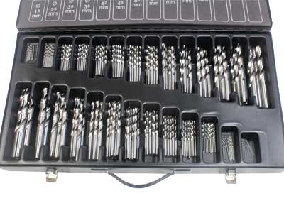 DIN338 N, HSS-G ø1-13mm, 0.5mm nousulla + porat M4 ja M5 kierretapeille: ø3.3mm ja ø4.2mm, lukumäärät: ø1.0-8.0mm 10kpl kutakin ja siitä ylöspäin 5kpl/koko. metallisalkku