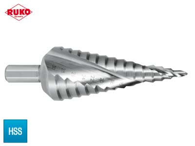 Kuvaus: ø1: 4.0mm, ø2: 30.0mm, porrasluku: 14 (90° ─ 2mm nousu), ø3: 10.0mm, L1: 100mm, CBN hiottu kierukkaura: hiljainen käyttöääni, laadukas porausjälki, optimoitu lastunpoisto suojelee leikkauspintoja ja vähentää epätasaisuuksia, pitkätkin lastut poistuvat katkeamattomina, kartiomainen muoto helpottaa terän ulosvetämistä. pikateräs, ristiinteroitettu, teräkselle <900N/mm², alumiinille, messingille ja muoveille, soveltuu myös pronssille ja valuraudalle