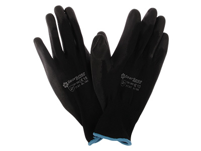 Musta työkäsine Polyuretaanipinnoitetulla kämmenellä, suojaluokka 3.1.3.1. EN388. Koko 10