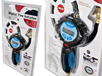 360° kääntyvä letku, muovirunko, työpaine: 6.2bar (90psi), mitta-asteikot: Psi - Bar - kg/cm² - kpa, valaistu kirkas LCD-näyttö, paristot: 2xAAA (incl.),. puhallus: 0.04m³/min, tarkkuus: ±0.07bar @ ???5.5bar, ±0.1bar @ 5.6-11bar,1/4\" letkulle, -10°C ??? +45°C