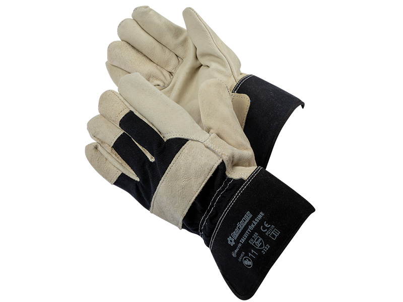 Siannahkainen talvityökäsine ohuella sisävuorella. Pehmeä valkoinen nahka. Suojaluokka 3.1.2.2 EN388. Koko 11