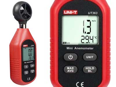 tuulimittari (anemometri) - mini, mittaa tuulennopeutta 30m/s asti ja lämpötilaa, kevyt, ergonominen rakenne, käyttäjäystävällinen käyttöliittymä, LCD-näyttö 32x26mm taustavalolla, Data Hold, MAX/AVG, paristot 3xAAA, automaattinen virrankatkaisu (5min), alhaisen paristojännitteen ilmaisin (3-3.5V), ylikuormituksen ilmaisin (>45m/s). mittausalue: 0-30m/s (±5%rdg+0.5), näyttötarkkuus 0.1m/s, lämpötila-alue -10°C ??? +50°C (±2°C), boforiasteikko: 0-12 (±1), näytteenottotaajuus 0.5s, 160x50x28mm, 118g, CE, RoHS