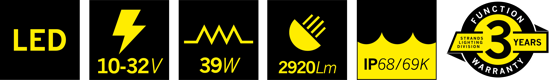 Strands 809287 Nuuk D-line QB on haastaviin olosuhteisiin suunniteltu kompakti työvalo, näyttävillä lisäominaisuuksilla. Valmistaja ilmoittaa mitatuksi valotehoksi 2920 lumenia, 5700K värilämpötilalla ja kantamaa 59m@1lux. Valo on rakennettu kestämään, korkealaatuiset materiaalit ja IP68/69K-luokitus tekevät siitä täydellisen työkalun haastaviin työolosuhteisiin. Musta runko ja linssin kehys antavat valolle erottuvan yleisilmeen, jonka kruunaa linssin poikki kulkeva oranssi tai punainen "parkkitoiminto".