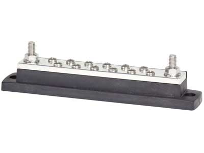Blue Sea 2105 Maxi kytkentäkisko 250A 2x M8 - 10x M5 Blue Sean valmistama jykevä Maxi kytkentäkisko, jossa on kaksi M8 lähtöä ja 10kpl M5 liitosruuveja. Valetut rosteriset kiinnityspultit... Lue lisää