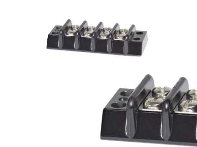 Blue Sean valmistama 4-osainen kytkentäkisko 30A. Kukin ruuvipari muodostaa yhden isoloidun virtapiirin. Suljettu rakenne eristää täysin virran asennuspinnalta.