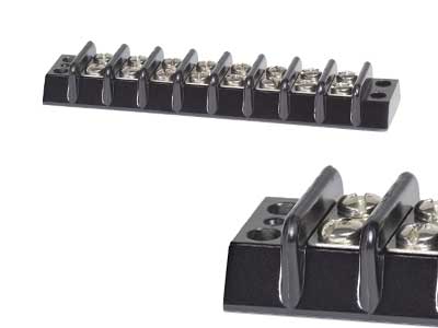 Blue Sean valmistama 8-osainen kytkentäkisko 30A. Kukin ruuvipari muodostaa yhden isoloidun virtapiirin. Suljettu rakenne eristää täysin virran asennuspinnalta.