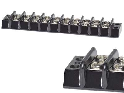 Blue Sean valmistama 10-osainen kytkentäkisko 30A. Kukin ruuvipari muodostaa yhden isoloidun virtapiirin. Suljettu rakenne eristää täysin virran asennuspinnalta.