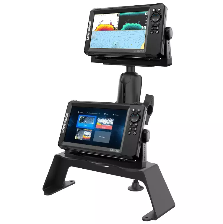 RAM-FF1-D-115 on tukeva kahden karttaplotterin alumiinista valmistettu kiinnityssarja. Asennustelineen avulla saat asennutta kaksi näyttöä helposti toistensa läheisyyteen. Itse telineessä on useita esiporattuja reikäkuviota, joten se on yhteensopiva suosittujen luotainmerkkien kuten Humminbird, Garmin, Lowrance. Telineessä on myös 3kpl 4-hole AMPS reikäkuviota D-sarjan kiinnikkeitä varten. Tämän sarjan mukana toimitetaan myös lisätukijalan kanssa ja Hi-Torq vääntimellä jonka avulla saat mukana tulevan D-sarjan kiinnitysvarren lukittua paikalleeen.