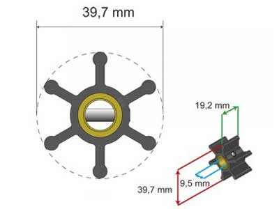 copolymer neopreeni (MC), huviveneisiin, Jabsco, JMP, Johnson Pump, Sherwood, Volvo Penta, Yanmar. ISO9001, 39.7x9.5x19.2mm, 42g
