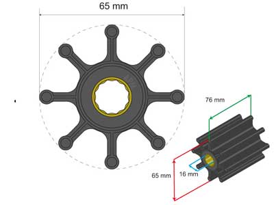 Kuvaus: copolymer neopreeni (MC), ammattiveneisiin, Jabsco, JMP, Volvo Penta. ISO9001, 261g