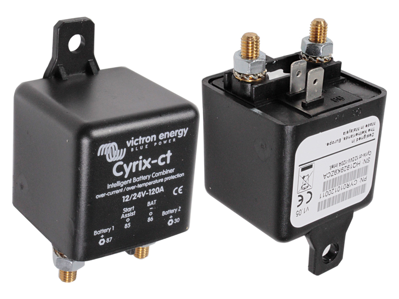 Älykäs kaksoisakkurele lataamaan esimerkiksi AGM-kulutusakkua moottorin starttiakun kautta. Cyrix yhdistää akut rinnan automaattisesti kun jomman kumman akun napajännite on saavuttanut esiasetetun tason 13-13.8V tai vaihtoehtoisesti 26-27.6V. Cyrix automaattisesti kytkee akut irti toisistaan kun napajännite putoaa alle kellutusjännittetason 11-12.8V tai vaihtoehtoisesti 22-25.7V